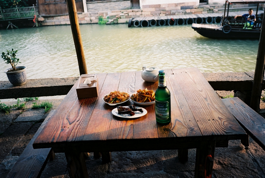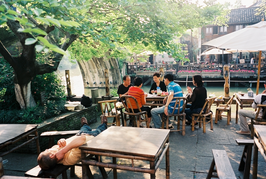 乌镇邮局里坐满了正在“奋笔疾书”的大学生,或是给远方的朋友捎去一个问候,或是互相给坐在同一条凳子上的情人写上一段情话……在乌镇西栅,整个人就松弛了下来,以致于一群40岁摸样的台湾游客在河边聊天正畅快时,手中的水壶落入了河中,溅起阵阵水花,热心的老板赶紧拿来竹竿准备去捞。“不用了,不用麻烦了,就留在这里做个纪念吧。” 其中一位满嘴金牙穿着Red Wing的台湾中年男拦住了老板。
